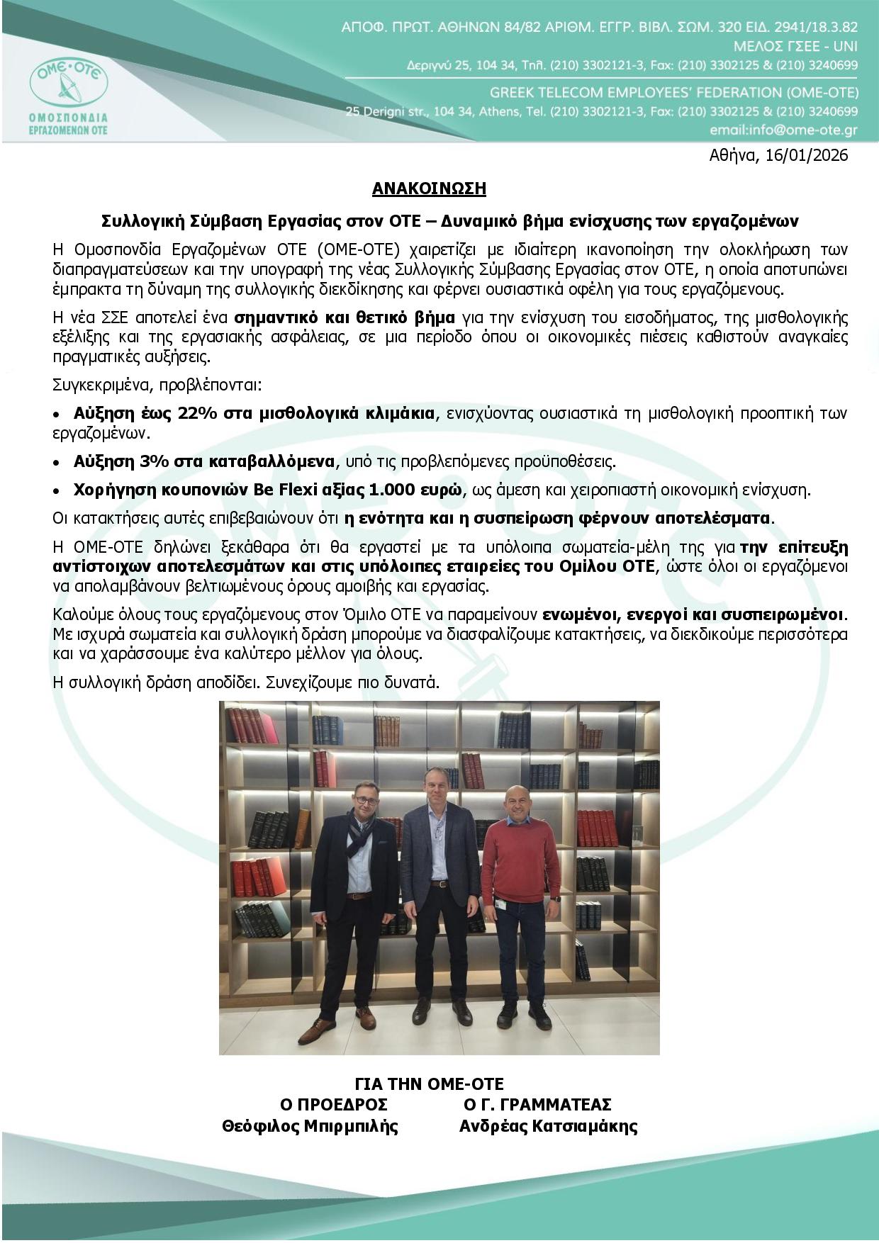 Συλλογική Σύμβαση Εργασίας στον ΟΤΕ - Δυναμικό βήμα ενίσχυσης των εργαζομένων