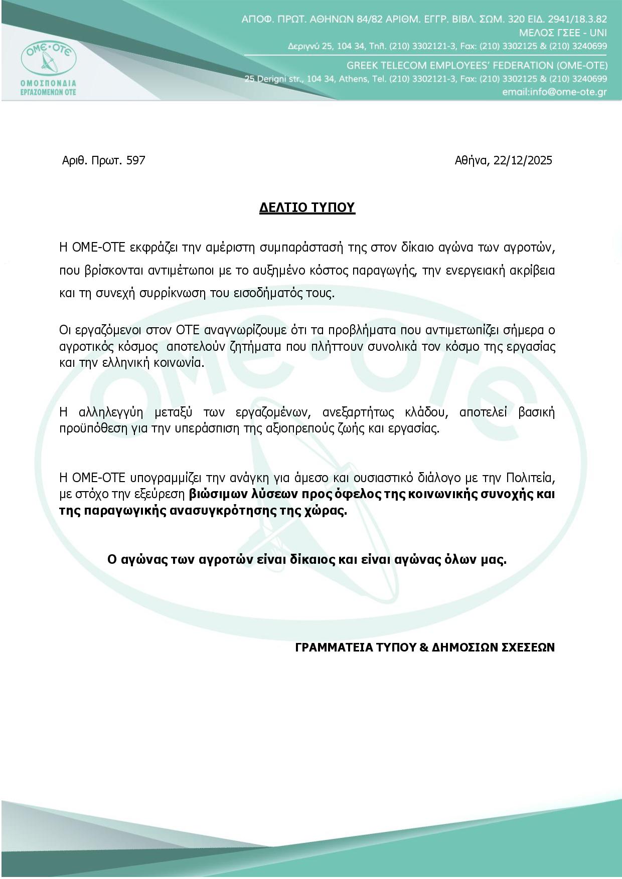 ΔΤ ΣΥΜΠΑΡΑΣΤΑΣΗ ΣΤΟΥΣ ΑΓΡΟΤΕΣ-ΚΤΗΝΟΤΡΟΦΟΥΣ